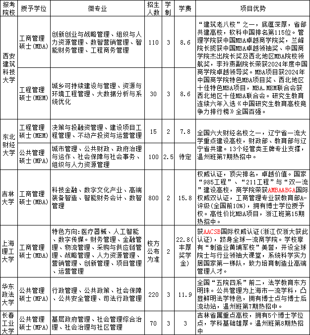點(diǎn)擊鏈接“溫州非全日制研究生(MPA|MBA|MEM)項(xiàng)目總覽”即可查看