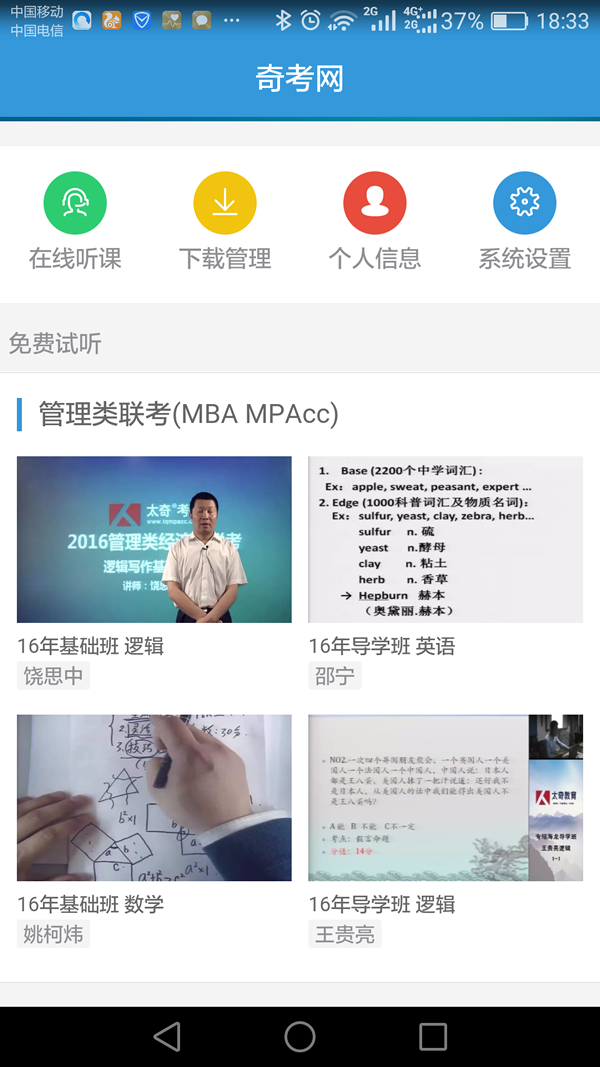 太奇考研客戶端是一款專注于備考管理類聯(lián)考(MPA\MBA\MPAcc)備考服務(wù)的手機(jī)軟件。提供2017年的考研公開課,擁有海量名師高清網(wǎng)課視頻。
