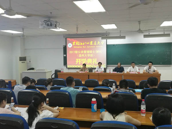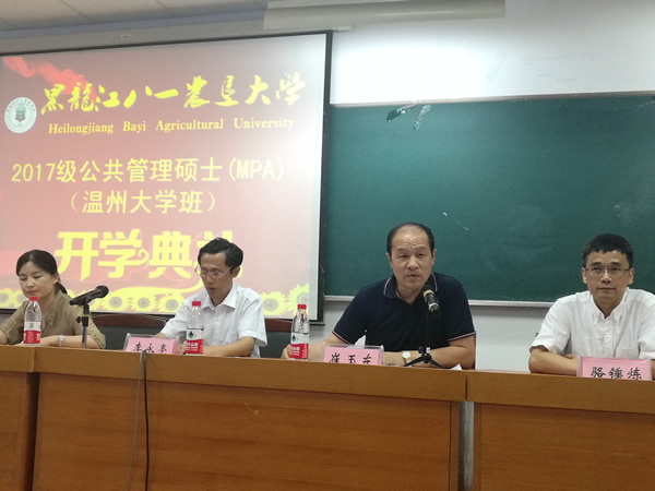 8月12日上午舉行了2017級(jí)MPA新生開(kāi)學(xué)典禮,黑龍江八一農(nóng)墾大學(xué)研究生院院長(zhǎng)兼博士生導(dǎo)師崔玉東教授、八一農(nóng)大人文社會(huì)科學(xué)學(xué)院院長(zhǎng)李永亮教授、八一農(nóng)大公共管理學(xué)科帶頭人陳彥彥教授、溫州大學(xué)繼續(xù)教育學(xué)院駱錘煉副院長(zhǎng)出席了開(kāi)學(xué)典禮。首先由駱錘煉副院長(zhǎng)介紹了溫大、在職研究生辦學(xué)情況;李永亮院長(zhǎng)做新生致辭,提出對(duì)新生的幾點(diǎn)期望,尤其是要處理好工學(xué)矛盾,隨后2017級(jí)研究生牛澤同學(xué)代表新生發(fā)了言,研究生院院長(zhǎng)崔玉東教授說(shuō)明了論文要求,最后由陳彥彥教授做了一個(gè)半小時(shí)關(guān)于公共管理學(xué)的學(xué)術(shù)報(bào)告。開(kāi)學(xué)典禮結(jié)束后,學(xué)院領(lǐng)導(dǎo)、老師、工作人員和2017級(jí)MPA研究生合影留念。